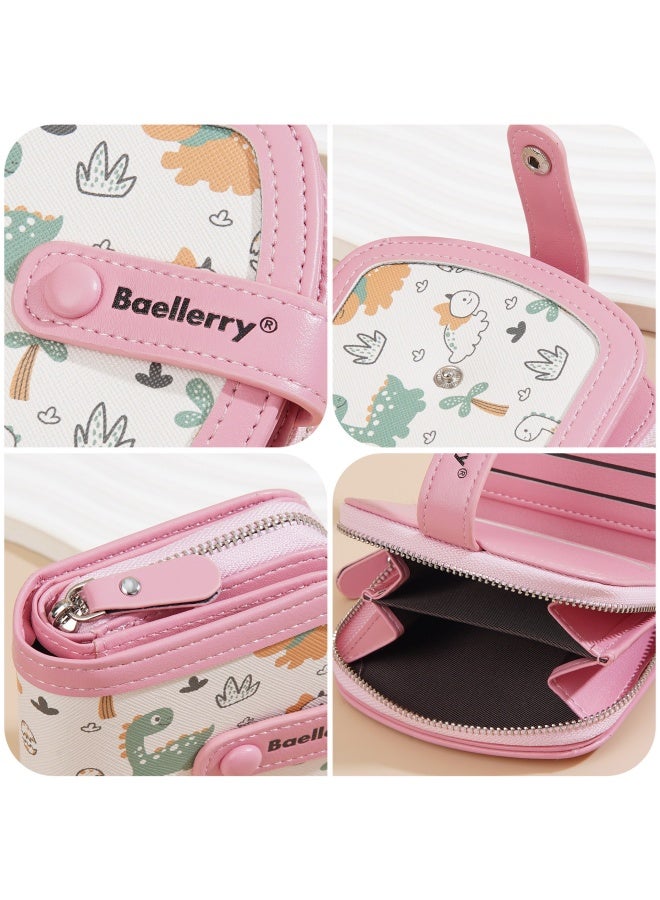 This wallet, with its playful design and practical performance, has become a beloved everyday item. It is mainly in pink color, paired with white areas printed with cute dinosaurs, dinosaur eggs, plants and other patterns. The overall style is lively and playful, full of childlike innocence, especially attracting children or people who like cute style.