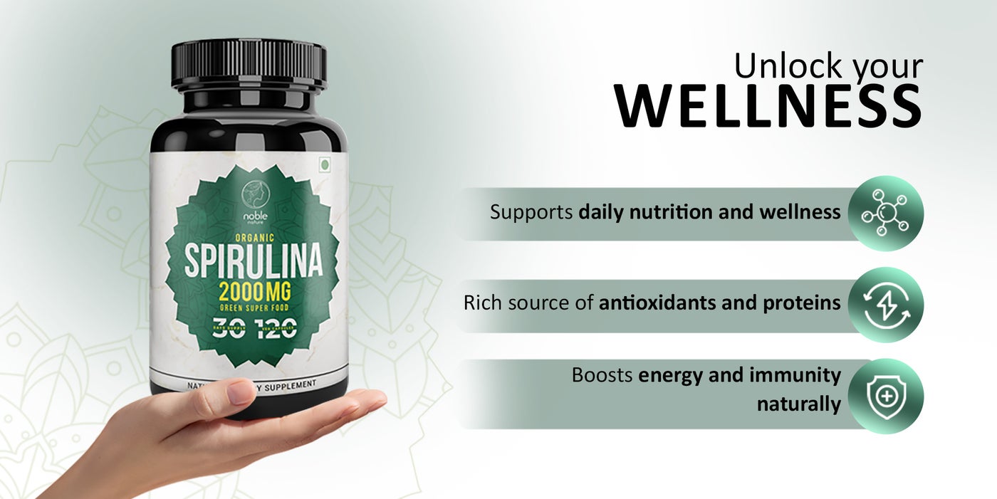 Boosts Immunity and Energy - Clinical research shows spirulina boosts immunity by positively impacting antioxidant activity & immune markers in your body’s cells. Gram per gram, Noble Nature Spirulina has 3,900% more beta carotene than carrots & 31 times more antioxidant activity than the immune-boosting superfood. This antioxidant capacity supports cellular health and immunity.