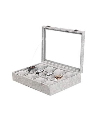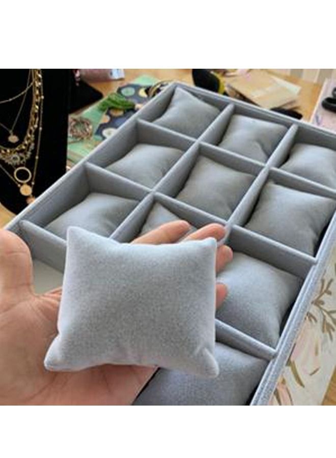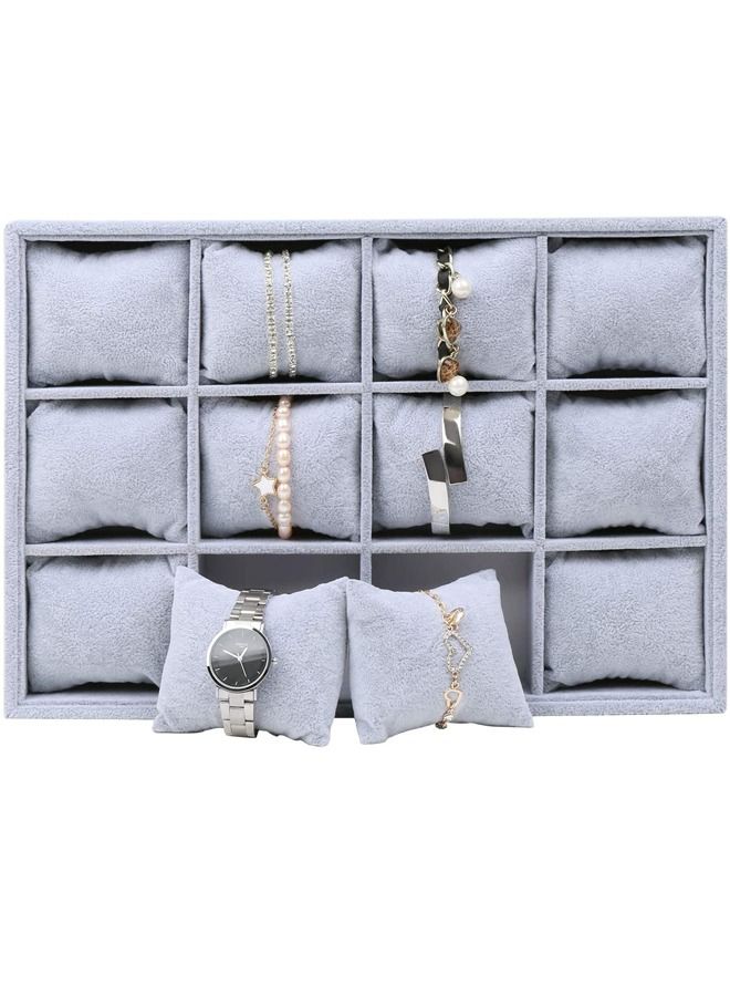 Padom Watch Jewelry Tray Organizer Bracelet Display Showcase 12 Grid Pillows Without Lid Tray Jewelry Storage Holder Grey Velvet Gifts for Men Women Girls