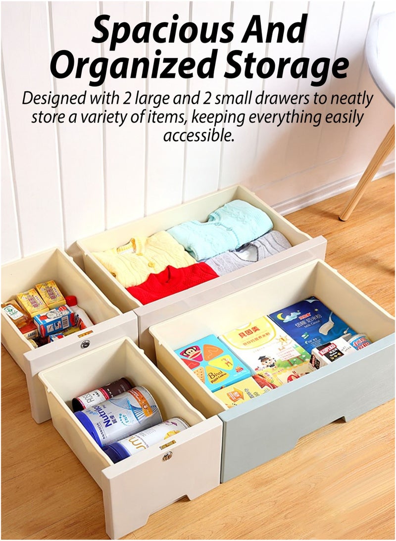 Safety Features: Rounded edges and lockable middle drawers for added security