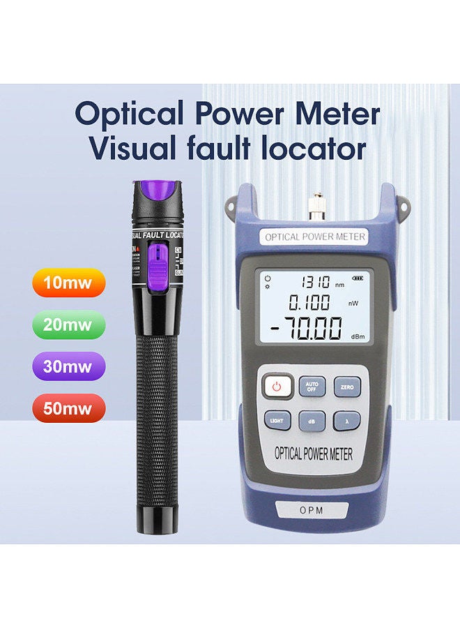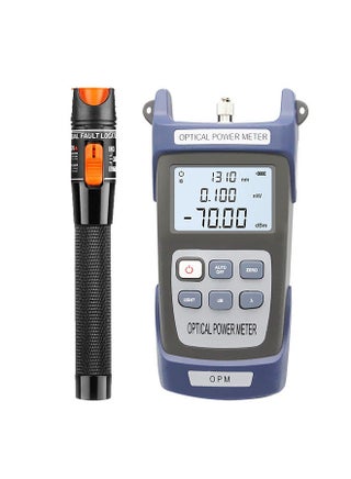 The Optical Power Meter and Visual Fault Locator Kit is a musthave tool for fiber optic technician or installer. This kit includes a high-accurate optical power meter and a visual fault locator, which can be used to detect fiber breaks, bends, and other faults. The power meter features a large LCD display and a wide measurement range, making it suitable for testing both singlemode and multimode fibers. The visual fault locator emits a bright red light that can be easily seen through the fiber connector, making it easy to locate faults. This kit is compact, lightweight, and easy to use, making it perfect for field use. Whether you're installing new fiber optic cables or troubleshooting existing ones, the Optical Power Meter and Visual Fault Locator Kit is an nice tool for fiber optic professional.
