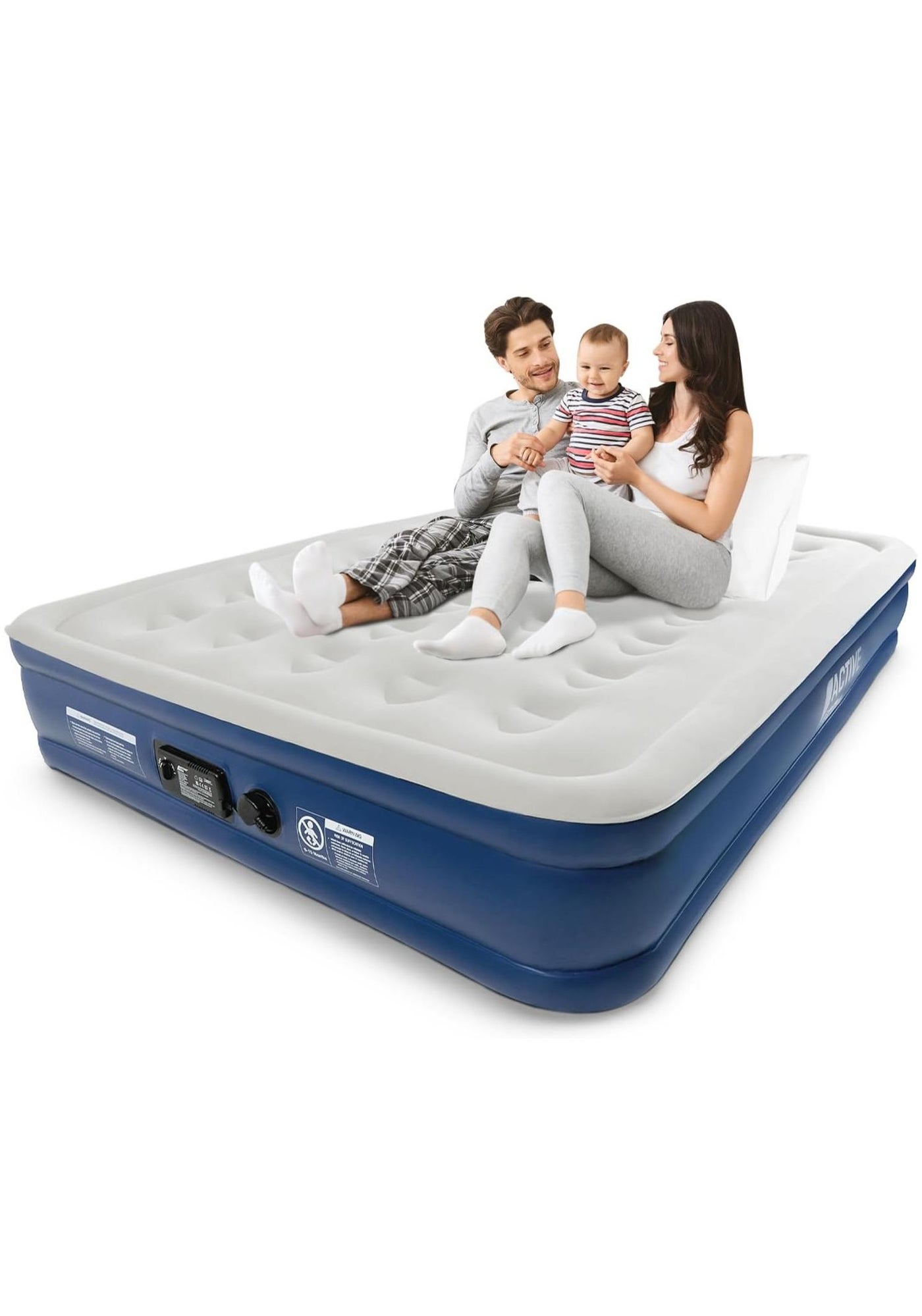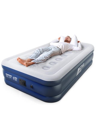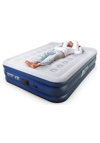 Elevate your sleep experience with the Active Era Premium King Size Air Bed. Unlike a single bed with mattress included, our mid-rise 13-inch air bed boasts an advanced support system with 40 structured air coils that provide unparalleled head-to-toe support, eliminating common issues like dips and bulges found in other airbeds. With a robust weight capacity of up to 227kg, this air bed double with built in pump ensures a restful night's sleep for the entire family or individual guests. Unlike other air beds with built in pump, the Active Era's electric pump effortlessly inflates the mattress to firmness in less than 3 minutes. At the flick of a switch, the pump automatically deflates the airbed, allowing for hassle-free storage in the provided compact storage bag. No more wrestling with manual pumps or dealing with bulky setups – this king size mattress streamlines the process for your convenience. Crafted with an extra-thick, hard-wearing, and waterproof flocked top layer featuring 5-gauge puncture-resistant material, this mattress double bed is designed to last . Experience premium comfort with the portable bed's top flocking and edge guard protection, ensuring both blow up mattress stability and expanded sleeping space - ideal for your travel plans. The blow up bed double is also super portable and foldable, and it's easy to roll on the floor before storing it in the included mattress storage bag - ideal for home use, camping adventures or accomodating an unexpected guest. The inflatable bed's king-size dimensions (152 x 203 x 33cm) mimic the design of a traditional king size bed with mattress, offering a spacious sleeping surface suitable for various scenarios – whether hosting guests at home or seeking a luxurious camping solution. Unlike a typical single mattress or double mattress, the large queen size air bed is perfect for 2 adults and a child. Transform your nights and embrace the luxury of a truly superior sleep experience.
