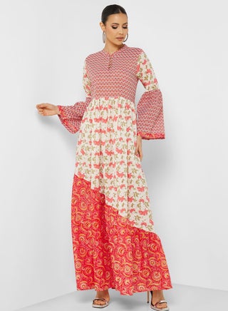 This Printed Button Neck Jalabiya Dress adds an understated cool factor to your staples collection that explores unmistakable identity.