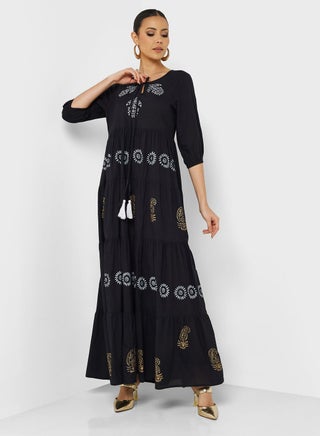 This Printed Drawstring Jalabiya Dress adds an understated cool factor to your staples collection that explores unmistakable identity.