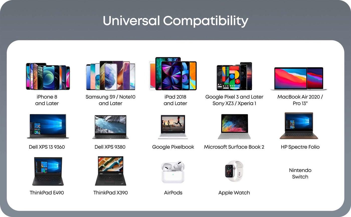 High-Speed Charging: Charge a 2020 MacBook Air in less than 2 hours, a MacBook Pro 13ʺ at full speed, an iPhone 13 up to 3× faster than with an original 5W charger, and charge the latest Samsung phones at full speed with Samsung Super Fast Charging.