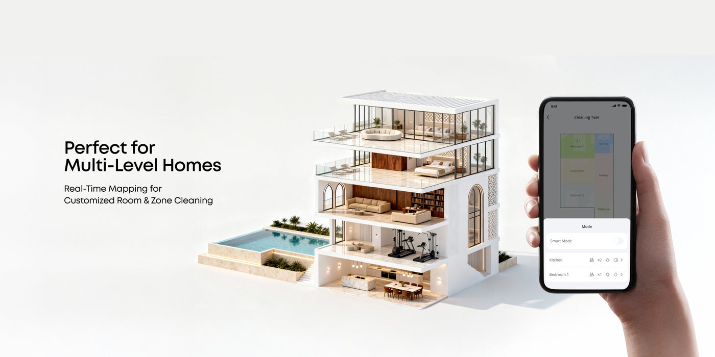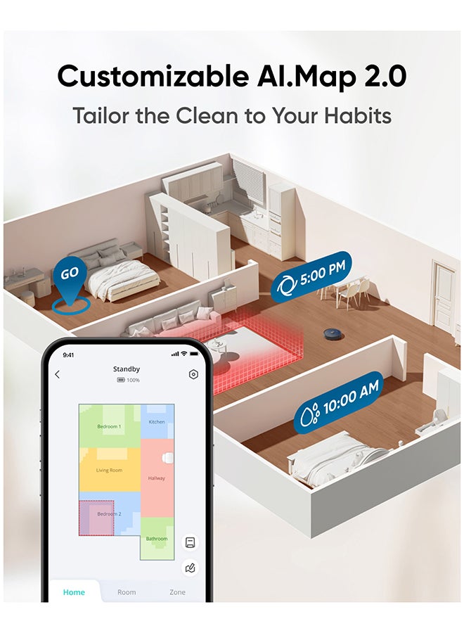 [Customizable AI.Map 2.0]: Create No-Go Zones, virtual boundaries, and more so that X10 Pro Omni cleans your space in the way you want it.