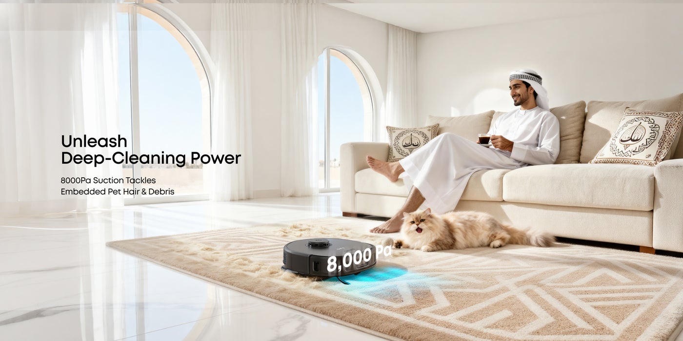 [Powerful 8,000 Pa Suction for a Deeper Clean]: X10 Pro Omni effortlessly removes hidden debris in carpets, including pet hair, for clean floors in just one pass. werful 8,000 Pa Suction for a Deeper Clean]: X10 Pro Omni effortlessly removes hidden debris in carpets, including pet hair, for clean floors in just one pass.