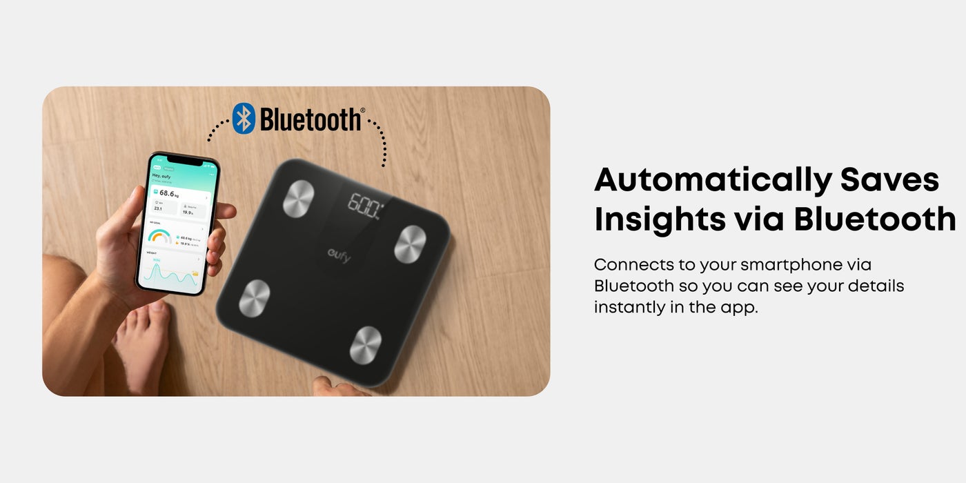 Record Insights on the App: Connect eufy A1 Smart Scale to the app and it will automatically update your latest insights via Bluetooth