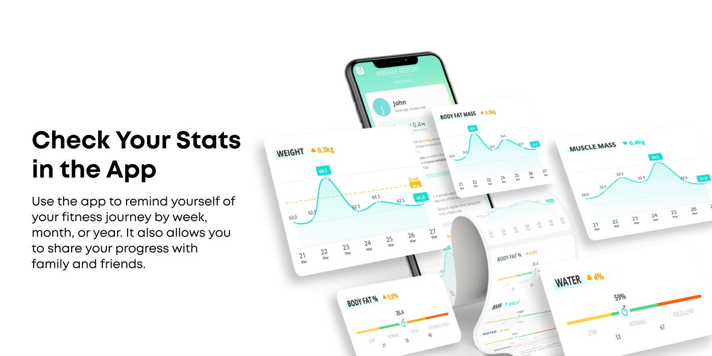 12 Body Measurements: Understand how your body is changing over your fitness journey with 12 key insights, including weight, body fat %, bone and muscle mass, and more