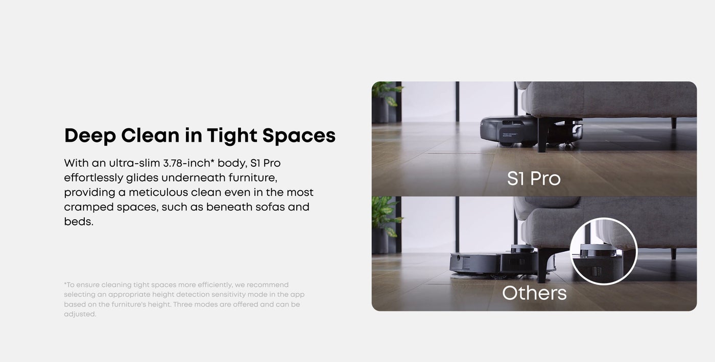 S1 Pro's sleek square design ensures it effortlessly reaches hard-to-reach areas like edges and corners for a thorough deep clean.