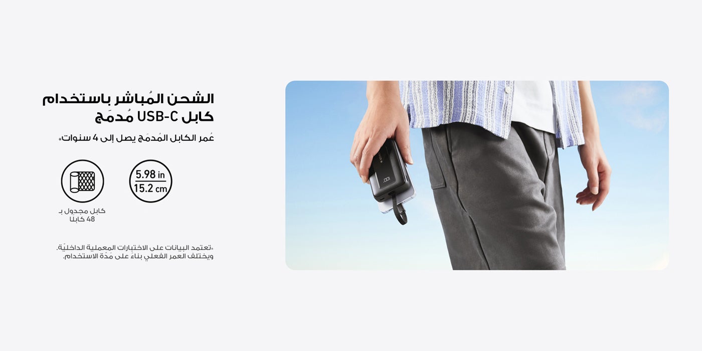 Durability on Demand: Features a 5.98-inch built-in USB-C cable that's not only convenient but also extremely durable, designed to withstand over 10,000 bends.