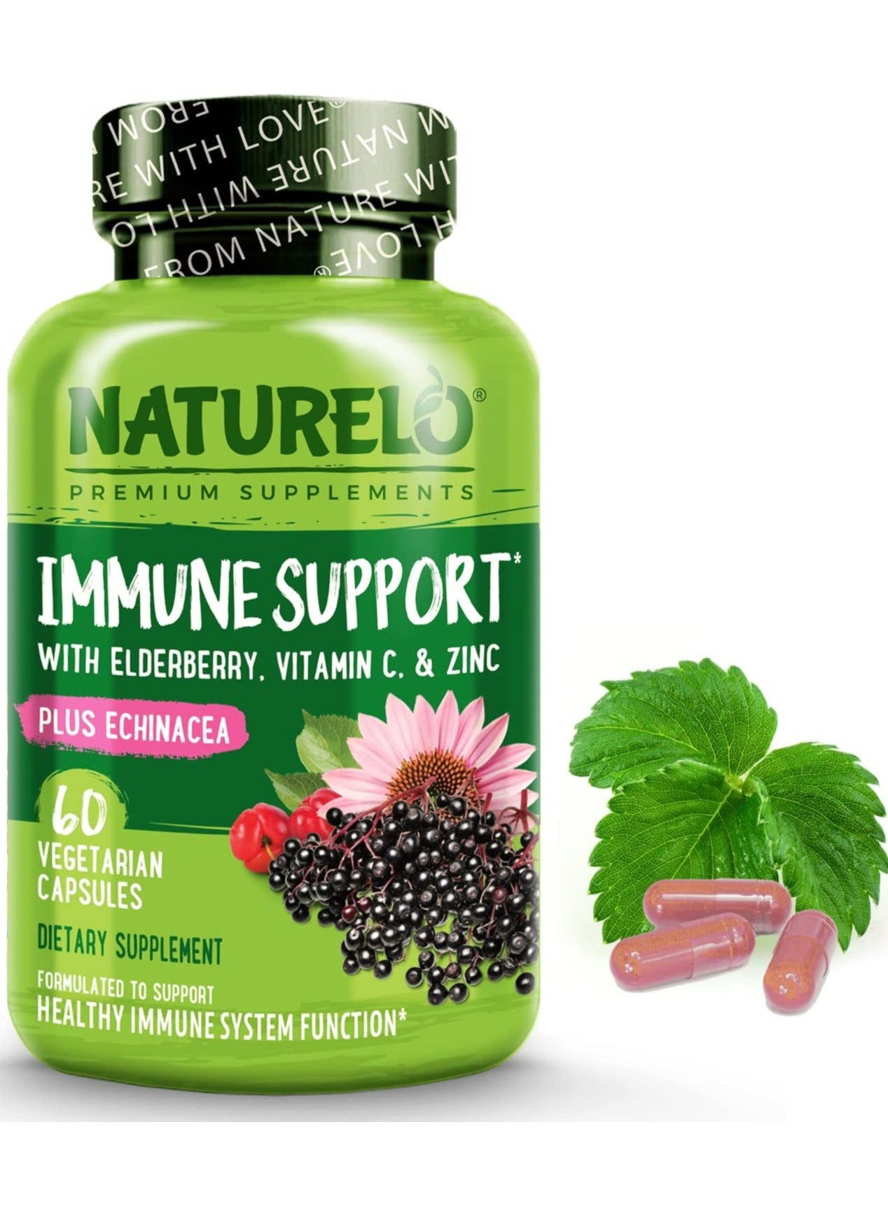 Immune Support With Vitamin C, Elderberry, Zinc, Plus Echinacea - Formulated To Support Healthy Immune System Function-60 Vegan Capsules
