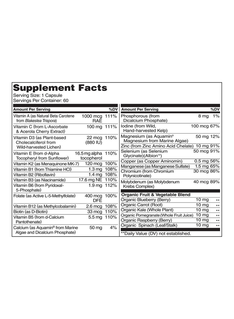 All-in-One Packed with 23 essential vitamins and minerals to support men’s health, plus organic fruits and vegetables for whole food nutrition and antioxidant support, all in just one daily multivitamin for men