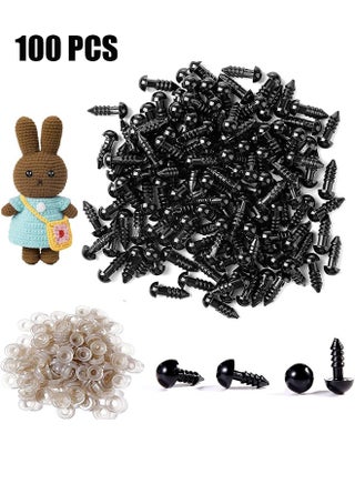 Doll Eyes with Washers, 100 Pcs Plastic Safety Crochet Eyes and 100 Pcs Washers, for Crochet Crafts Washer Assorted Sizes for Doll, Plush Animal and Teddy Bear Puppet Craft Making (0.48 Inch/12 mm)