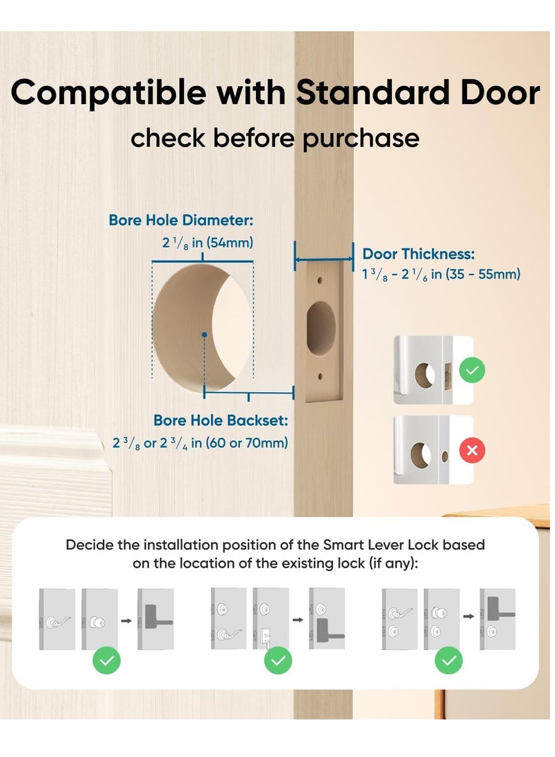 Merges Fingerprint Identification with Handle Gripping: Experience an ultra-fast and effortless unlocking process. The lock continuously refines its recognition with each use, ensuring quick and hassle-free entry for both parents and kids. Built-in Wi-Fi for Remote Management: Manage your interior doors and maintain home security from any location with access management, real-time notifications, and event history tracking. No Battery Worries with 12-Month Power: Enjoy peace of mind with the eufy Smart Lever Lock C33, providing reliable security without the constant need for battery changes. The lock remains operational throughout the year, ensuring continuous protection. More Compatible and Easy Installation: Install in just 15 minutes without drilling. This smart lever lock is compatible with doors that open on the left and right. Perfect for securing garage doors, side doors, office doors, or basement doors, it offers a seamless fit and straightforward installation process. Excellent Customer Service: eufy offers 24/7 support and an 18-month warranty backed by professional customer service. You can reach us by telephone, email, and live chat for a worry-free experience.
