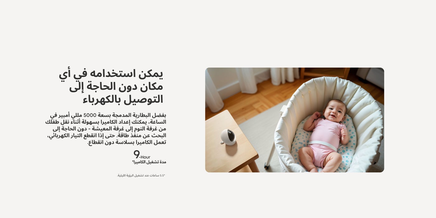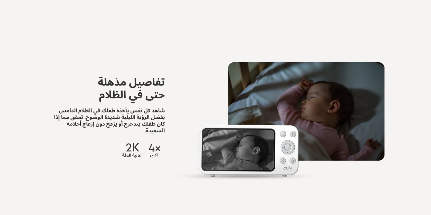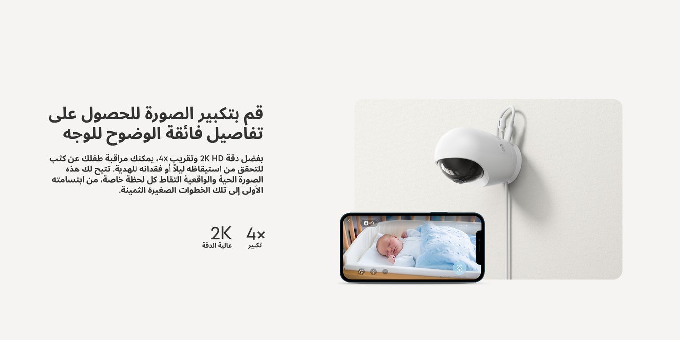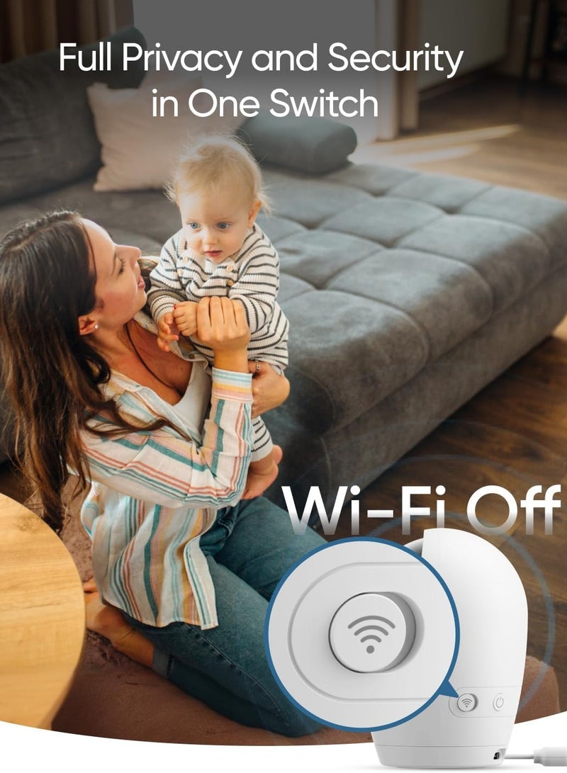 Constant Care with Hybrid Monitoring: Check in on your baby from anywhere at home, with or without Wi-Fi. Whether you're at work or traveling, stay connected through the app and share access with up to 5 family members for extra support. 2K HD Resolution to See Every Detail, Day and Night: With a 330° pan, 60° tilt, and 4× zoom, you'll catch every corner and facial detail, even seeing their chest rise and fall in the dark thanks to crystal-clear night vision. If you have twins, monitor both with two feeds on one split screen. Travel Made Easy with Plug-In or Battery Power: Powered by a 5,000mAh battery, this camera goes anywhere with your baby. Move it around at home or take it to your summer cabin or hotel for seamless care during trips and gatherings. You can always count on it, even during outages. Sleep Tight with Noiseless, Smart Monitoring: Get ready for some well-deserved rest. It comes with active noise reduction tech to cut background noise by 20 dB and alerts you to your baby's cries, room temperature changes, and loud noises. Plus, 24/7 recording in the app helps you uncover any sleep issues for your little one. Full Privacy and Security in One Switch: Toggle the switch to cut off Wi-Fi for a secure, private local connection. With RSA-1024 and AES-128 encryption, hackers and unauthorized users are kept at bay. Every recording is protected with a unique key for absolute peace of mind.