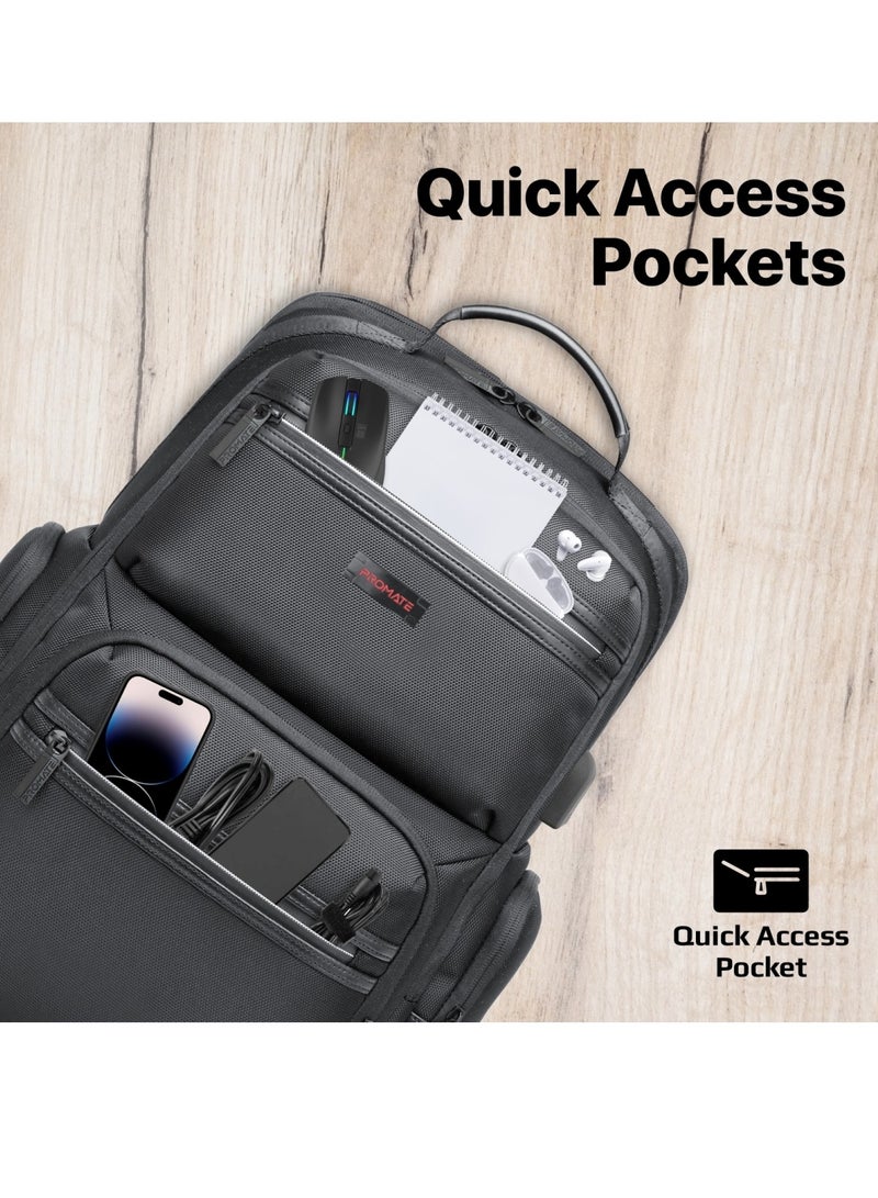 Stay ahead of your schedule with ElitePack-Lite's strategically placed quick-access pockets. Effortlessly retrieve essentials such as keys, wallets, or smartphones without disrupting your workflow, ensuring seamless productivity on the move.