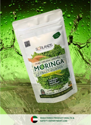 Pure organic moringa leaves powder contains with over 92+ nutrients, 46+ types of antioxidants, 20+natural amino acids, natural vitamins and minerals. Moringa Oleifera is a rich source of essential amino acids that our body cannot produce. They are loaded with Vitamins A,B,C for hair growth, Magnesium and Iron for tiredness reduction and boosted metabolism, Zinc to support a healthy immune system. Sorland’s pure moringa supports healthy Skin, Hair, Nails, Vision, Digestion, Memory, Metabolism, liver & Immunity.