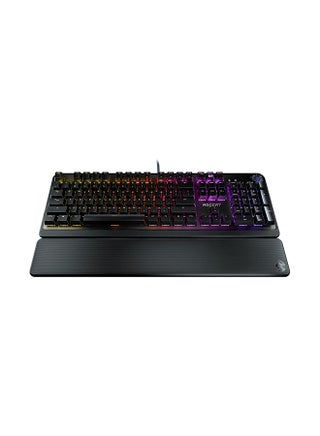 The ROCCAT Pyro Mechanical Gaming Keyboard with RGB Lighting is aimed at ambitious gamers who are ready to embrace mechanical. Its switches boast an optimized 2.0mm actuation point for a keystroke that feels both responsive and reliable. A reinforcing brushed aluminum top plate adds robustness, with switches tested to 50 million keystrokes. The Pyro also features ROCCAT Easy-Shift[+] button duplicator technology and a detachable palm rest for customizable comfort.