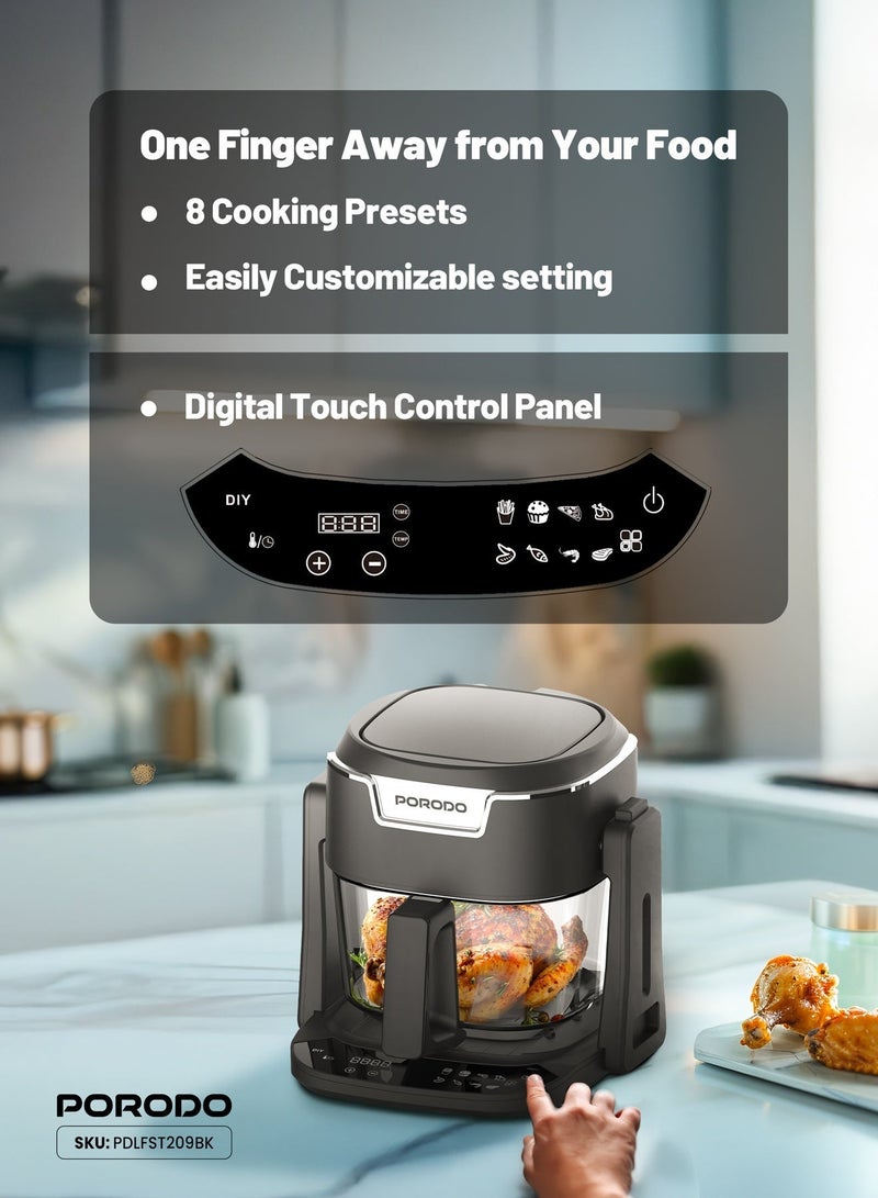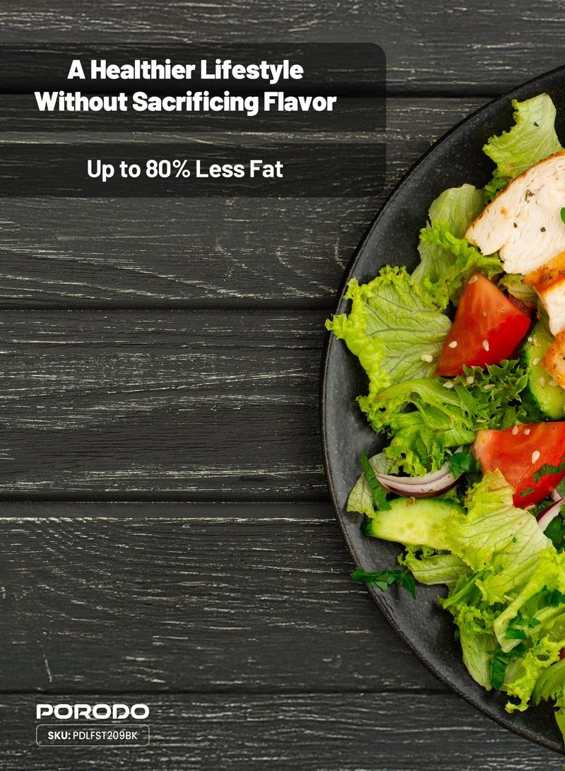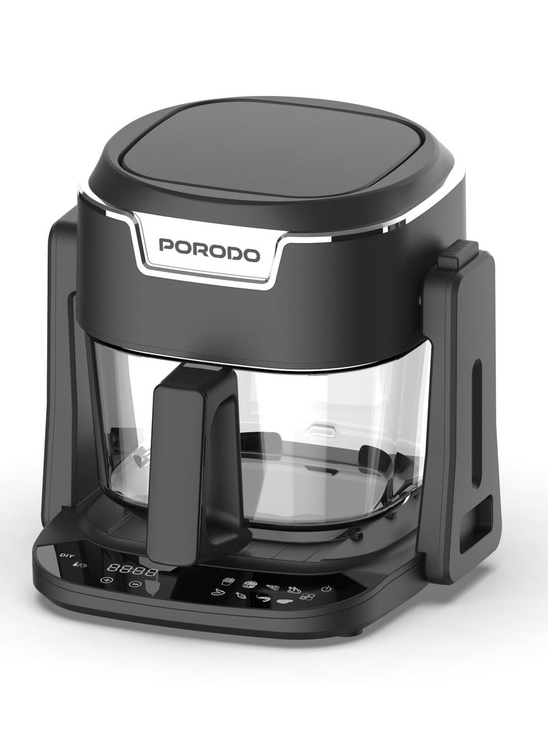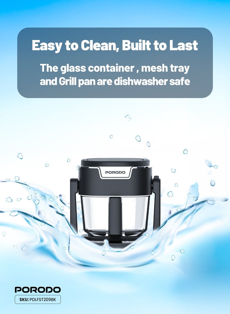 With a rated power of 1200-1400W, this multi-functional cooker offers powerful performance while consuming minimal energy. The 100% visible glass basket lets you monitor your food as it cooks, providing better control over your meal preparation. Designed for healthier cooking, the Porodo Quick Flip uses less oil, making it ideal for those who prefer low-fat meals without sacrificing flavor. Whether you’re frying, grilling, or simmering, this appliance delivers great taste with less fat.