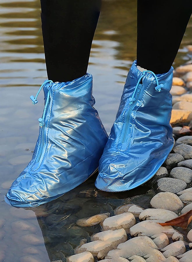 Rain Boot Waterproof Shoes Covers, Sand Control Non-Slip Shoe Cover Galoshes, PVC Rubber Sole Reusable Rain Snow Boots Overshoes for Cycling Outdoor Camping Fishing Garden Travel (XL, Blue)