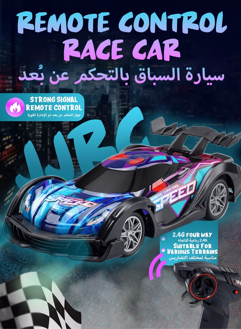 Easy to Control-The remote controller has been upgraded and simplified for ease of use.2.4 GHz control system has anti-interference function.Players can race together with a signal range of about 25-30m;Remote requires 2 AA batteries (not included)