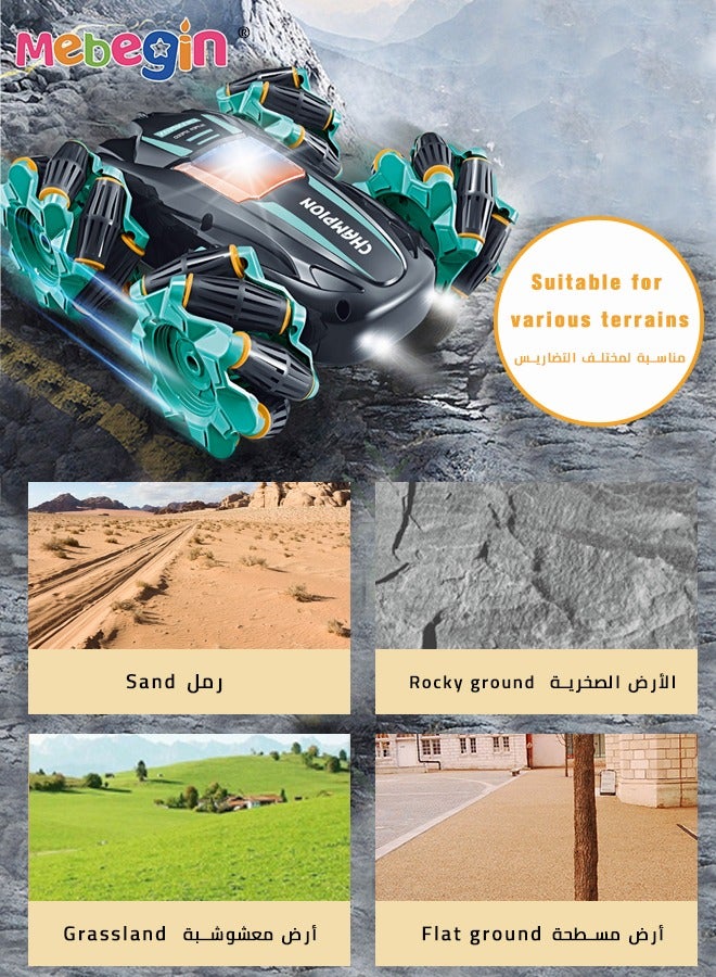 The stunt car has a double-sided driving design. When it encounters an obstacle and falls and flips over, the stunt car can also drive normally