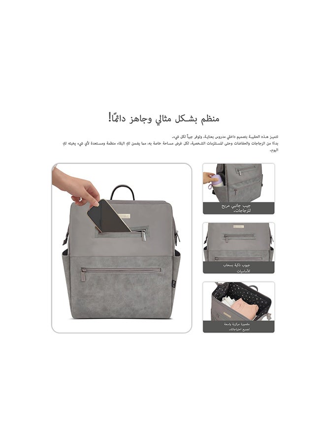 Elegant Design: This baby toddler diaper backpack appears to offer a modern, neutral style with sleek leather accents, potentially appealing to both parents for everyday use or travel. This travel bag for a boy or girl water-resistant interior and exterior, suggesting protection, and the wide zip-top opening looks like it provides easy access. Our large mommy bag is thoughtfully designed for organization, This large yet lightweight diaper bag includes a foldable changing pad, pouches, stroller straps, and an insulated pocket, with spacious compartments for baby essentials in a compact design. Diaper bag size: approx. 41 x 19 x 42 cm (26L). Changing pad size: 58 x 38 cm