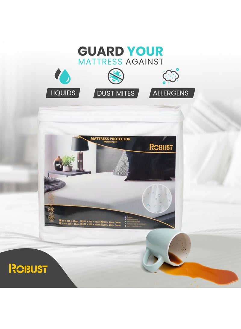 Introducing the Robust Ultimate Protection Mattress Encasement – the perfect solution for comfortable and hygienic sleep. This mattress protector is made from high-quality materials, ensuring long-lasting durability and protection. The elasticized fitted design makes it easy to install on your mattress, while the 30cm deep pocket ensures a secure fit. The soft surface provides a comfortable sleeping experience, while the inner polyurethane layer ensures the mattress stays completely waterproof. Our mattress encasement is also noiseless and crinkle-free, so you won't be disturbed while you sleep. It's hypoallergenic, protecting you against allergens, dust mites, and bacteria, ensuring that you get a safe and healthy sleep. This mattress encasement is also easy to clean, ensuring that you maintain a hygienic sleep environment. It protects against perspiration, urine, and all kinds of fluids, ensuring that your mattress stays in top condition for years to come. Overall, the Robust Ultimate Protection Mattress Encasement is the ultimate solution for comfortable and hygienic sleep. Whether you suffer from allergies or simply want to protect your mattress investment, this product is the perfect choice. So why wait? Order yours today and experience the ultimate in mattress protection!