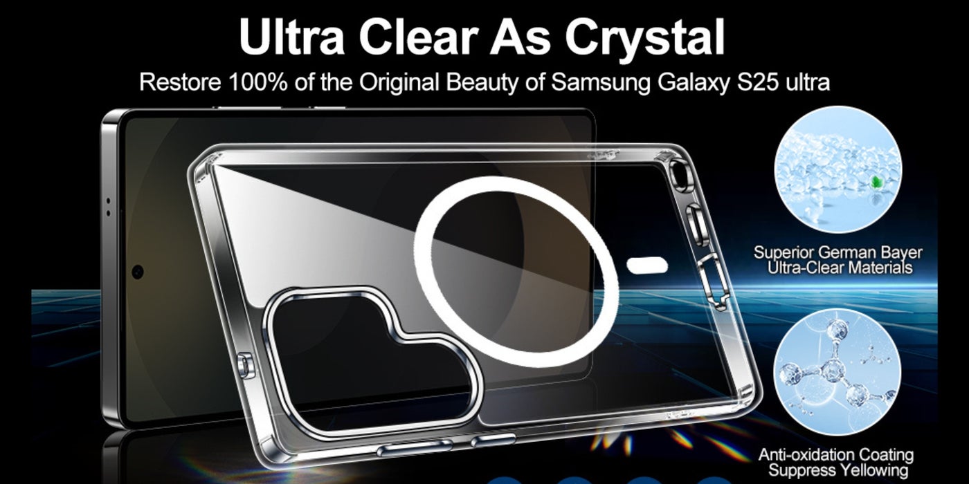 The BORTONY Samsung Galaxy S25 Ultra Case offers premium protection and style. Designed exclusively for the Galaxy S25 Ultra, it features strong built-in magnets for wireless charging and magnetic accessories. The crystal-clear, anti-yellowing back showcases your phone’s beauty, while raised bezels and shock-absorbing bumpers protect the screen, camera, and edges. Made from anti-slip materials, it ensures a secure grip while resisting stains and scratches. Stylish, durable, and functional—this case is the perfect choice for your Galaxy S25 Ultra.