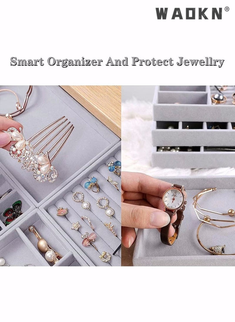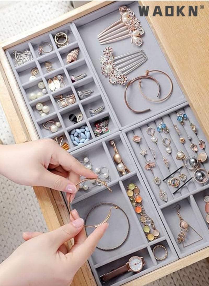 Constructed with sturdy composite board wrapped in premium velvet fabric with removable compartment dividers, the organizer trays are durable and attractive, protecting your jewelry from any kind of damage.