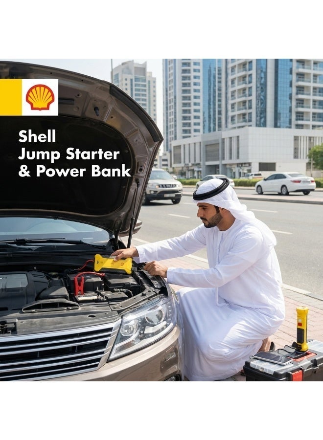 Power up every journey with confidence using the Shell Premium 1200A Car Jump Starter — your ultimate car jumper starter and power bank in one. Built for reliability and performance, this portable jump starter boost revives dead batteries in seconds for up to 7.0L gasoline or 3.0L diesel engines, making it ideal for cars, trucks, SUVs, and motorcycles across the UAE.