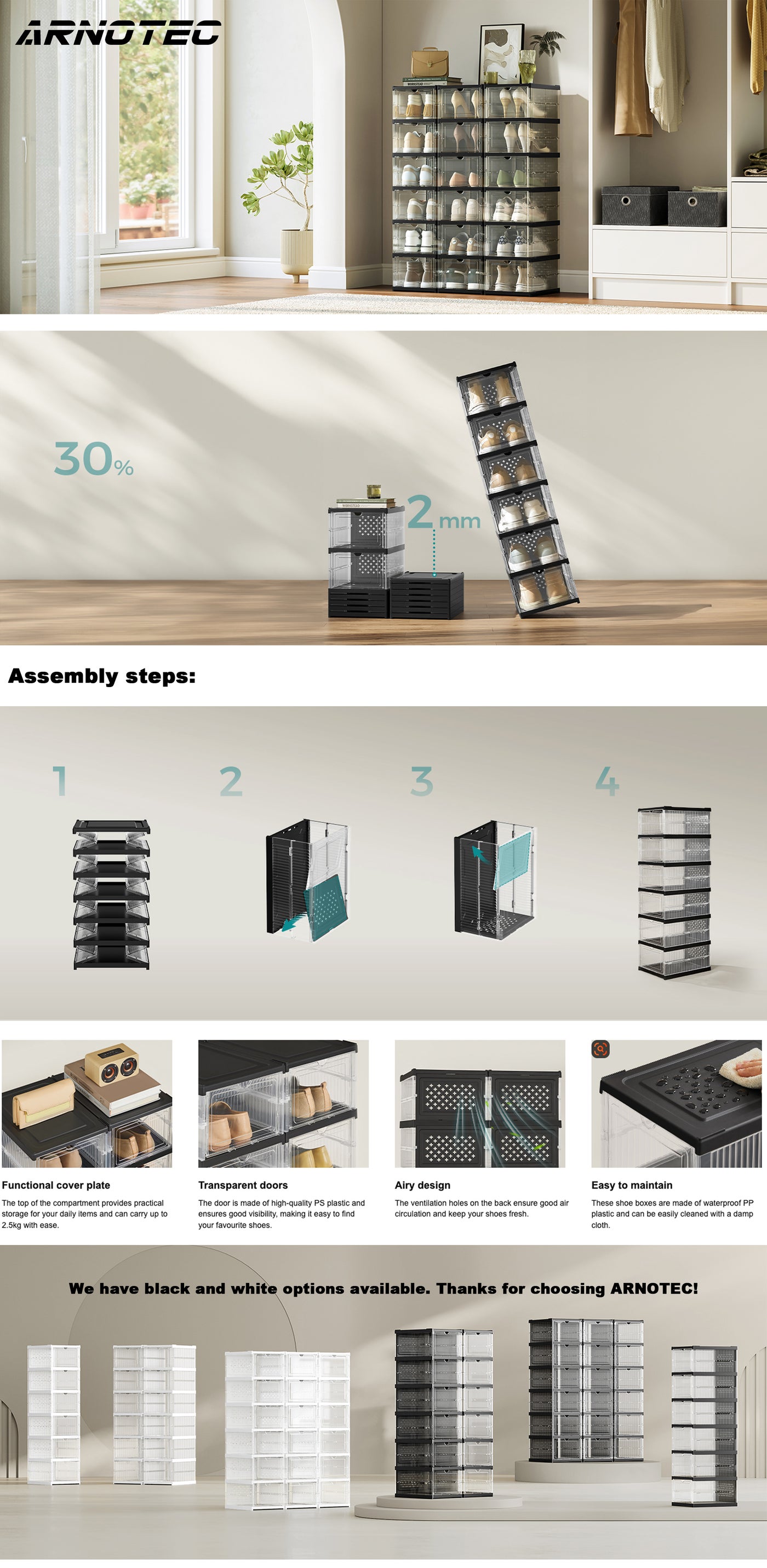 Easy to Carry: The shoe boxes can be folded within minutes for home moving or after temporary usage.