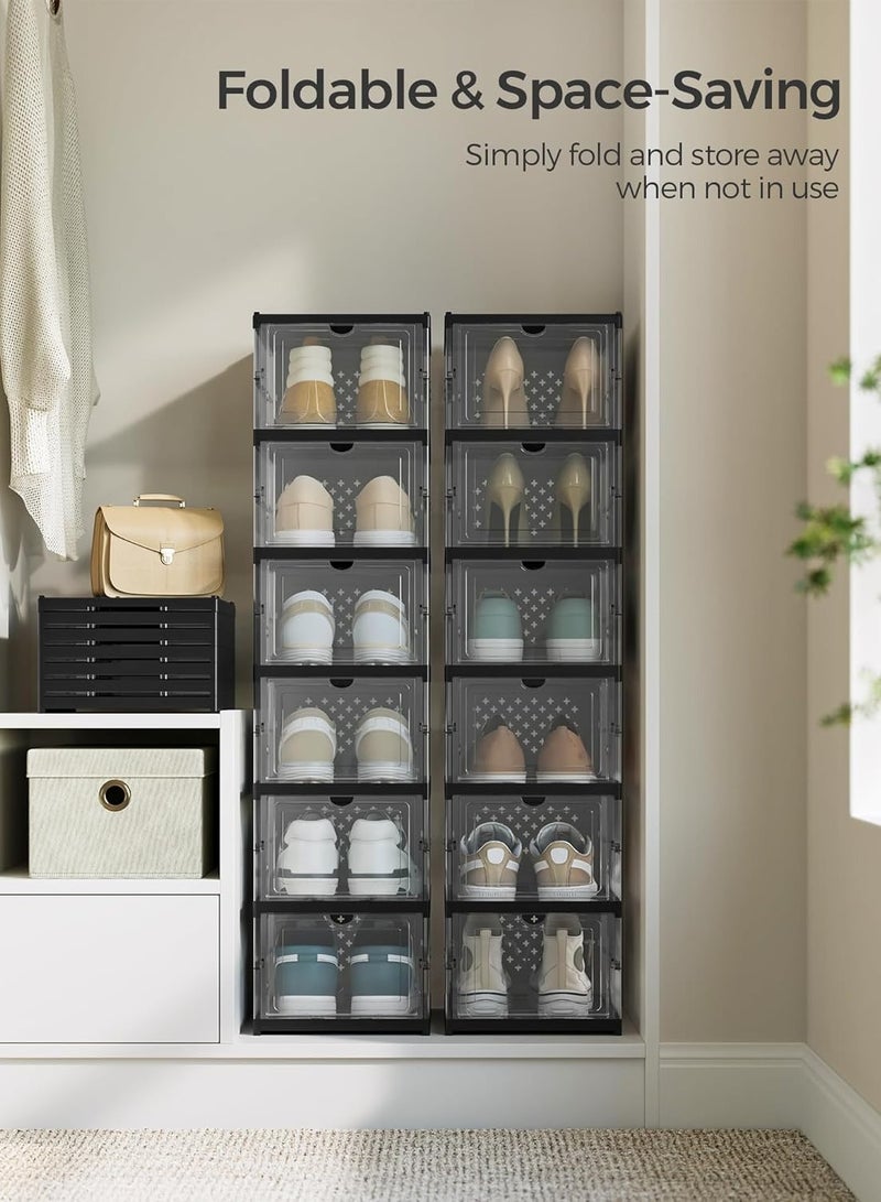 Large Capacity: Upgraded capacity can hold big size shoes. Sneakers, heels, flats, flip flops, sandals, wedges are all welcomed in these shoe boxes.