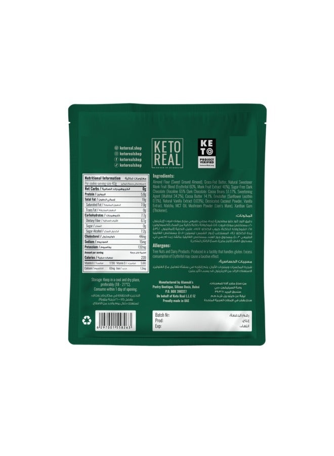 | Product Ingredients | Ingredients: Almond Flour, Grass Fed Butter, Monkfruit Blend, Vanilla Extract, Xatham Gum, Desiccated Coconut Powder, Matcha, Lion’s Mane Mushroom Powder |