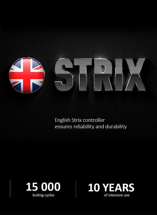 Equipped with a British STRIX controller, dry-boil protection, and automatic shut-off, the PWK 1775CGLD ensures long-lasting safety through thousands of heating cycles. The 3-year warranty and Swiss quality control reinforce its durability and reliability.