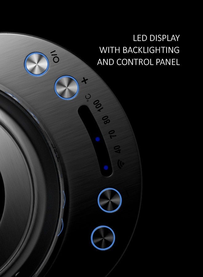 With a wide 40–100°C temperature range, this kettle is suitable for child food preparation, green tea, herbal tea, and high-temperature brewing. The advanced LED LCD touch base provides quick access to preset temperatures and creates a clean, premium interface.