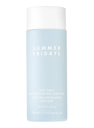 After cleansing with Super Amino Gel Cleanser, saturate a cotton round with Soft Reset AHA Exfoliating Solution; its formula is buffered with soothing aloe and hyaluronic acid so you can use it every night. Sweep over face and neck, avoiding eye area. Once fully absorbed, follow with Jet Lag Mask. *Soft Reset is formulated with 16% AHAs we recommend using once daily in your nighttime routine. If you have especially sensitive skin or regularly use other exfoliation products, you should slowly build up to daily use.