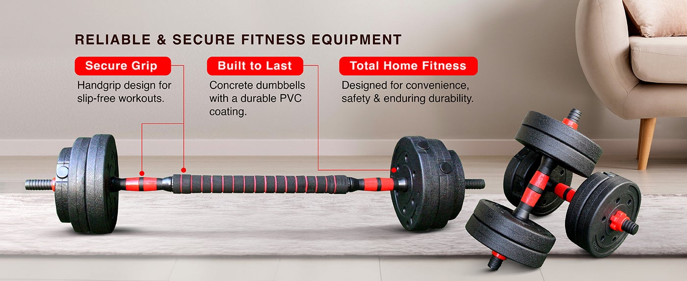 Introducing Sparnod Fitness 2-in-1 Dumbbells/Barbell – the ultimate home fitness solution for versatile and eco-friendly workouts. With an easy 3-step assembly, these concrete dumbbells with PVC coating offer a slip-free handgrip for a secure hold during your exercises. Effortlessly switch between dumbbell and barbell modes to target specific muscles or engage in full-body strength training. From biceps to lunges, this convenient and durable fitness equipment is designed for total home fitness. Upgrade your workout routine with Sparnod Fitness for a reliable, eco-friendly, and efficient fitness experience.