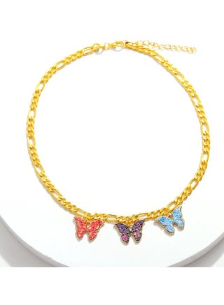 Turn heads with this fashion-forward butterfly statement necklace, crafted with a vibrant mix of color-drip enamel and rhinestone sparkle. The chunky gold-tone chain brings a bold edge to your outfit, while the butterfly pendant adds a sweet yet rebellious twist.