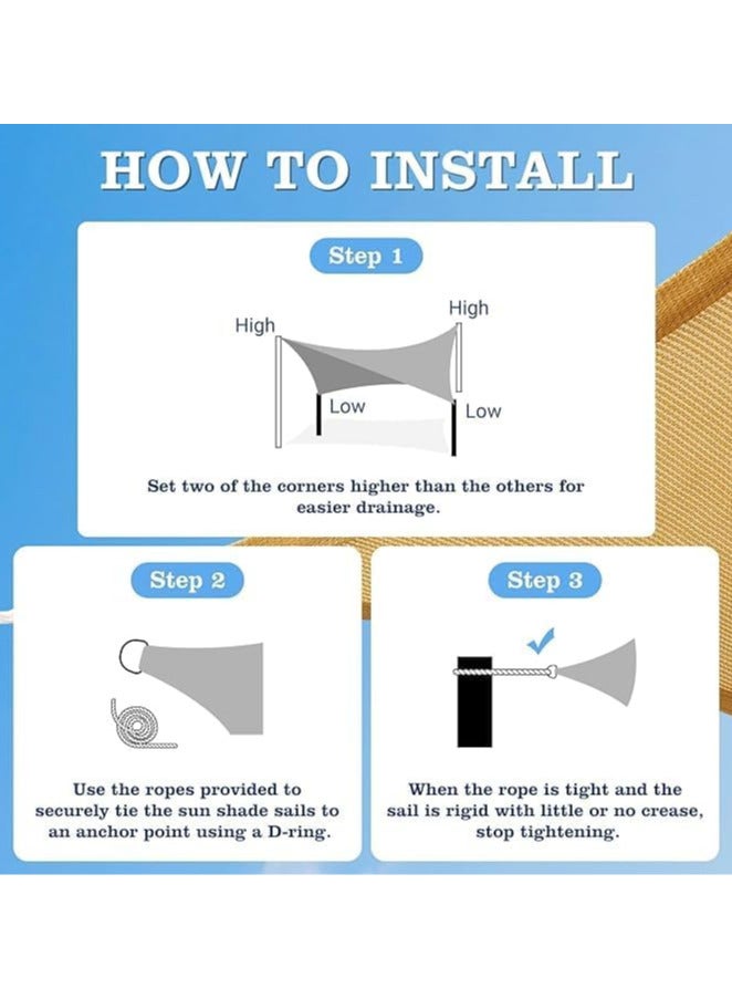 【EASY TO INSTALL】- The sunshade cover is easy to set up and take down. Stainless steel D rings are attached to each corner and thick PE ropes are included for easy installation.