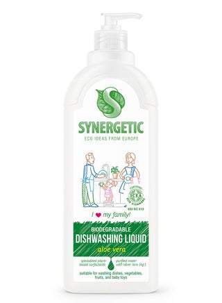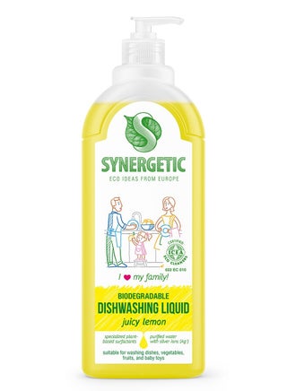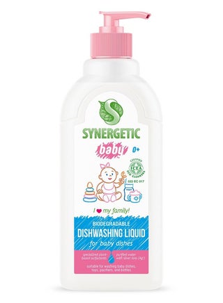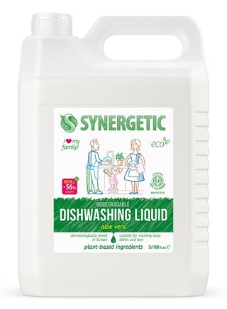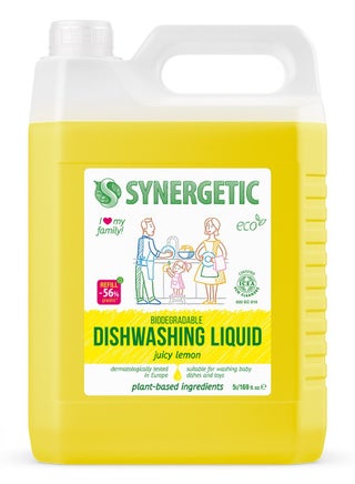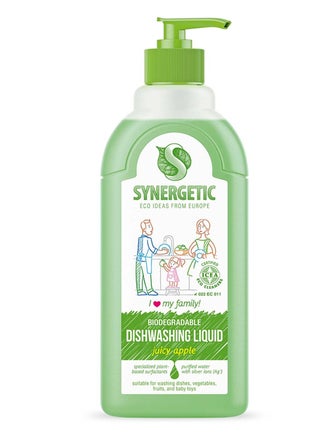 SYNERGETIC Biodegradable Dishwashing Liquid (Apple, 1000ml) removes grease, food residues, and odors with its ultra-concentrated formula. Designed for all types of dishes, kitchen utensils, and baby toys, it effectively cleans without leaving residue or streaks. Made with biodegradable surfactants, it foams well and works even in cold water. Vegetable glycerin keeps hands moisturized and irritation-free, making it safe for frequent use. The refreshing apple scent leaves dishes smelling fresh, while the ICEA certification ensures safety, biodegradability, and effectiveness. Completely rinsable and septic-safe, this dishwashing liquid is an eco-friendly choice for a spotless clean.