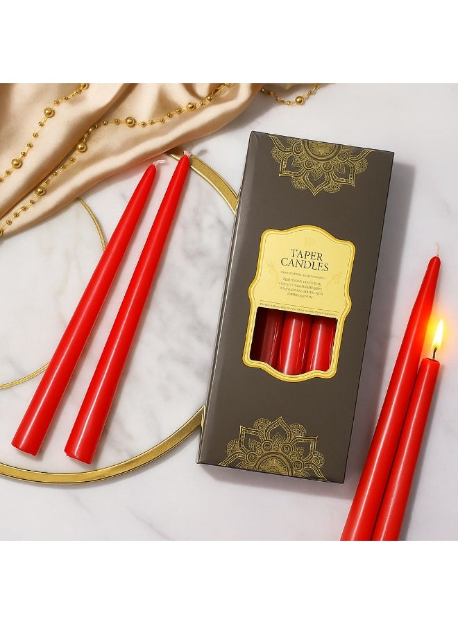 Enhance your celebrations and spaces with this 12 Pcs Red Taper Candle Set, elegantly presented in a luxurious black and gold box. Each candle is carefully crafted from premium-quality paraffin wax, offering a clean, dripless, and smokeless burn that lasts for hours. Their vibrant red color adds a touch of warmth, romance, and festivity—perfect for romantic dinners, festive events, pooja ceremonies, and elegant home décor. The refined design fits beautifully into candle holders or centerpieces, while the classy packaging makes it a thoughtful gift choice for weddings, housewarmings, or holidays. Create the perfect cozy or ceremonial ambiance with these timeless taper candles.