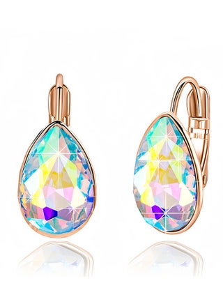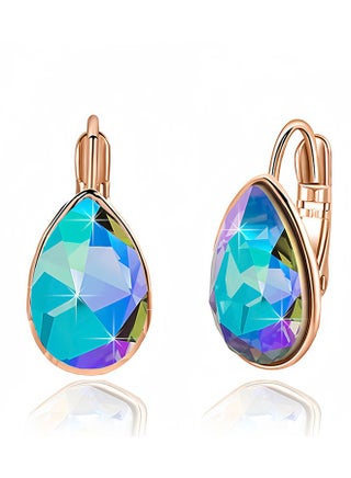 | What's In The Box | 1 pair of women's teardrop shaped Austrian crystal lever drop earrings with free jewelry box |