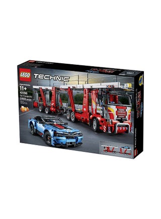 Introduce young LEGO builders to the basics of engineering with this highly detailed LEGO Technic 42098 Car Transporter toy. This authentic replica model comes with a host of realistic features and functions for hours of play and design exploration. You can raise and lower the car decks and rear ramp for seamless navigation to the upper and lower levels, lock vehicles into position for safe transportation, and tilt the driver's cab to access a detailed V6 engine with moving pistons. This 2,493-piece building set also includes a blue car with working steering and V8 piston engine and is compatible in scale with the 42093 Chevrolet Corvette ZR1 (sold separately). It comes with a classic red, gray and black color scheme with stickers for additional detailing. Rebuild this 2-in-1 vehicle transporter to create the LEGO Technic Truck and Show Cars model.