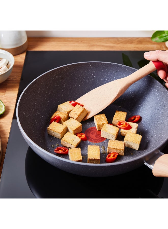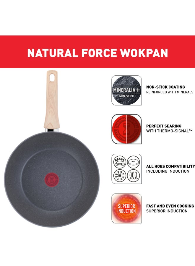 Discover the Tefal Natural Force Wok Pan, part of the new must-have cookware collection for healthier cooking every day. Inspired by nature, Natural Force comes equipped with the new ultra-resistant Mineralia+ non-stick coating, combining minerals and impressive non-stick results, for low-fat cooking with performance that's built to last. On top its 100% recycled aluminum body* helps to reduce the environmental impact. Tefal’s latest innovations round off the package: Thermo-Signal™ for perfect searing and Thermo-Fusion+™ for fast and even cooking.