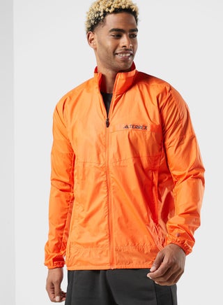 Extend your range on the trail. This versatile Terrex windbreaker is a lightweight layer that lets you push into the alpine or cover up as the weather changes.