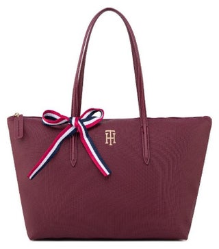 Tommy Hilfiger Women's Burgundy Tote Bags, Classic Fashion Versatile Signature Tape Large Capacity Shoulder Bag Handbag for Travel, Work, Gym,