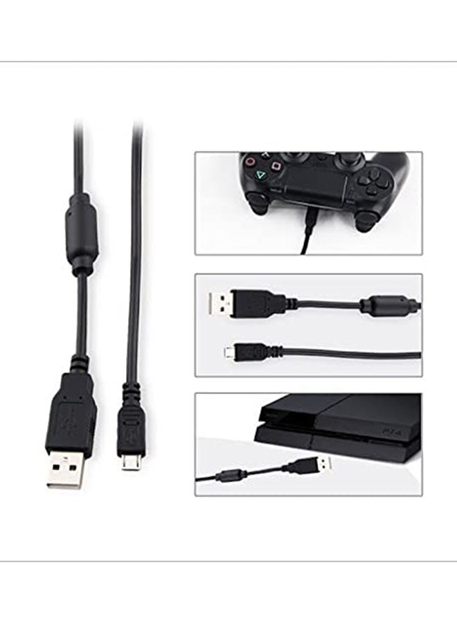 Allows players to sync data with the PS4.Can charge from any power source with a USB port.Total charge time of 1.5 to 2 hours when charging from a PS4 console USB port.6-foot charging cable allows for playing PlayStation 4 while simultaneously charging a PS4 controller.micro USB to USB type-A connectors.Enjoy the thrill of PlayStation 4 game time while simultaneously charging your PS4 controller with the PlayStation 4 Controller Charging Cable. The 6-foot charging cable provides a comfortable distance between the PS4 console and the controller, making it easy to stay in the game no need to stop and recharge.The cable provides a micro USB connector on one end and a USB type-A connector on the other end. The USB type-A connector fits directly into the PS4 console, and the micro USB connector fits securely into the PS4 controller with no loose wiggling, which means you can confidently use the controller while it charges.When connected to the USB port of a PS4 console, the charging cable can fully charge a controller in just 1.5 to 2 hours. Once fully charged, the controller can provide 15 to 30 hours of battery life, depending on the game.The charging cable offers convenient charging from any PS4 console or other power source with a USB port. It can even be used to charge a mobile phone with a micro-USB input.