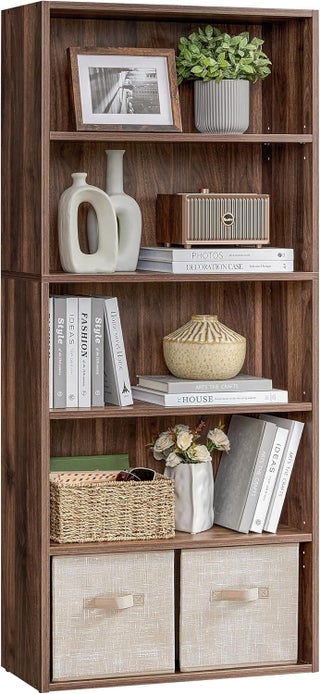 VASAGLE Custos Collection - Bookshelf, 5-Tier Bookcase, Book Shelf, Open Storage Shelf, 9.6 x 23.6 x 52.8 Inches, for Living Room, Home Office, Dinning Room, Natural Walnut